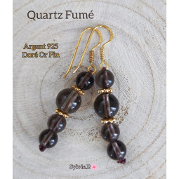 Boucles d'oreilles pour femme avec des boules en Quartz Fumé, pierre naturelle ou semi-précieuse, pour la Lithotérapie. Une paire de boucles d'oreilles de création unique et Originale - Argent 925 et doré Or Fin. D'une longueur total d'environ 4,50 cm.