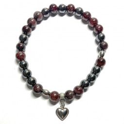 Bracelet boules pour femme, élastique en Grenat et Hématite composé de petites boules ou perles en pierres naturelles semi-précieuses pour la Lithothérapie. Un bracelet de création unique et originale d'un diamètre de 55 mm et d'une  longueur de 19 cm composé de minéraux pour un bien-être au...