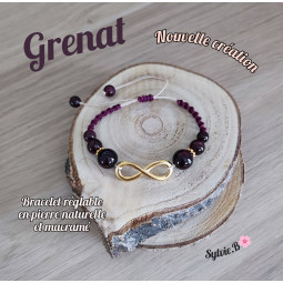 Bracelet boules, pour femme, macramé en Grenat composé de petites boules ou perles en pierres naturelles semi-précieuses pour la Lithothérapie. Un bracelet de création unique et originale ajustable d'un diamètre minimum de 45 mm à maximum 80 mm et d'une longueur minimum de 14 cm à 22 cm maximum...