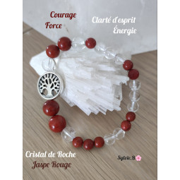 Bracelet boules, pour femme, élastique en Cristal de Roche et Jaspe Rouge composé de petites boules ou perles en pierres naturelles semi-précieuses pour la Lithothérapie. Un bracelet de création unique et originale d'un diamètre de 52 mm et d'une longueur de 18 cm composé de minéraux pour un...