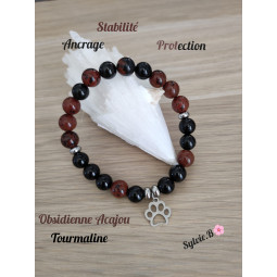 Bracelet boules, pour femme en Obsidienne Acajou et Tourmaline composé de petites boules ou perles en pierres naturelles semi-précieuses pour la Lithothérapie. Un bracelet de création unique et originale d'un diamètre de 54 mm et d'une longueur de 19 cm composé de minéraux pour un bien-être au...