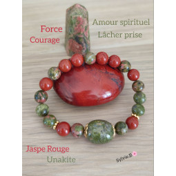 Bracelet boules, pour femme, élastique en Jaspe Rouge et Unakite composé de petites boules ou perles en pierres naturelles semi-précieuses pour la Lithothérapie. Un bracelet de création unique et originale d'un diamètre de 55 mm et d'une longueur de 19 cm composé de minéraux pour un bien-être au...