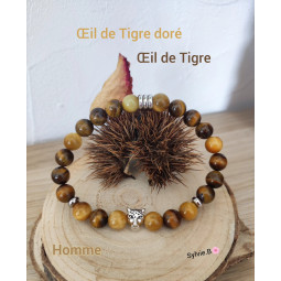 Bracelet boules, pour homme, élastique en Œil de Tigre et Œil de Tigre doré composé de petites boules ou perles en pierres naturelles semi-précieuses pour la Lithothérapie. Un bracelet de création unique et originale d'un diamètre de 59 mm et d'une longueur de 20.5 cm composé de minéraux pour un...