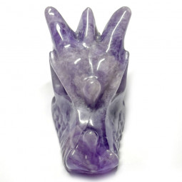 Tête de dragon en améthyste, symbole de protection et de puissance. Idéale en lithothérapie pour apaiser et harmoniser votre énergie.