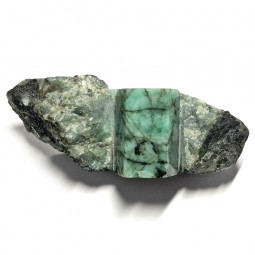 Pierre : Émeraude naturelle dans sa gangue (mica, quartz, feldspath)
