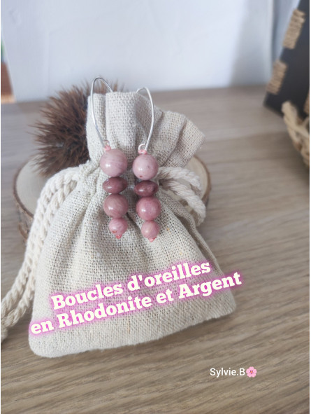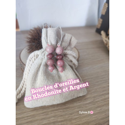 Boucles d'Oreilles Argent 925 et Rhodonite - Modèle Unique