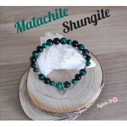 Bracelet 2 Pierres (Rhodonite & Shungite) - Modèle Unique