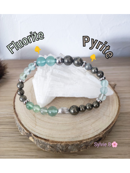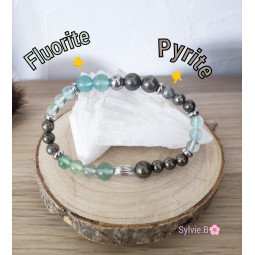 Bracelet 2 Pierres (Pyrite & Fluorite (Fluorine)) - Modèle Unique