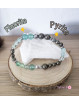 Bracelet boules pour femme, une création unique, un bracelet original, avec une jolie perle lisse ronde aplatie en Acier Inoxydable argenté, une belle perle ovale striée en face également en Acier Inoxydable et six rondelles qui séparent les rangs elles aussi en Acier Inoxydable argenté. Toutes sont intercalées aux perles de 6 et 8 mm, perles en pierres naturelles ou pierres semi-précieuses. En Lithothérapie, il est reconnu que chaque pierre naturelle a ses propres vertus et c'est en les portant que nous pouvons profiter des bienfaits des minéraux. La première pierre naturelle, présente sur ce joli bracelet asymétrique est le Fluorite, ou Fluorine. La Fluorite est une pierre naturelle qui permet d'harmoniser les quatre éléments fondamentaux en nous, la terre, l'eau, le feu et l'air. C'est la pierre semi-précieuse idéale pour surmonter toute forme de désorganisation. Grâce à son énergie, la Fluorite aide à développer la concentration et l'esprit d'analyse. A cela ce très joli minéral permet de se libérer des blocages psychologiques, des sensations de stagnation. Équilibrante, la Fluorite ouvre la conscience aux réalités de l'amour inconditionnel. Cette pierre naturelle soulage également les colères et est efficace contre les états de tristesse. Sur le plan physique la Fluorite agirait positivement sur les problèmes cutanés et osseux. La deuxième pierre naturelle est la Pyrite. La Pyrite est la pierre semi-précieuse de l'organisation, de l'ordre, du raisonnement. Ce minéral aide au rétablissement des polarités du corps physique. Un autre bienfait de la Pyrite consiste à faciliter la restructuration du mental, à cela se rajoutent la stimulation des facultés intellectuelles et la rationalité de la pensée. Sur le plan physique la Pyrite améliorerait la santé de voies respiratoires et renforcerait le système nerveux. Un bracelet pour la confiance en soi, l'organisation et les facultés intellectuelles.