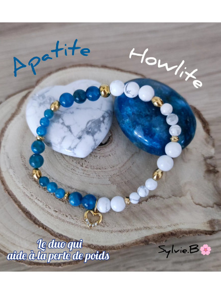 Bracelet 2 Pierres (Apatite & Howlite) - Modèle Unique