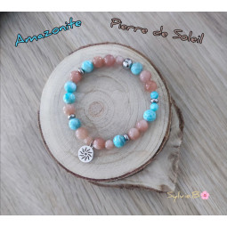 Ce bracelet boules pour femme est une création unique. Un bracelet symétrique qui est très original avec une perle aplatie filigrane en métal de couleur bronze ainsi que trois rondelles fleur couleur bronze également qui s'intercalent aux perles en pierres naturelles ou pierres semi-précieuses présentes sur ce joli bracelet très féminin. Ces deux minéraux sont l'Apatite et la Howlite en perles de 8 mm. En Lithothérapie, les pierres naturelles ou semi-précieuses sont étudiées quant à leurs vertus et c'est en les portant que nous bénéficions des bienfaits des minéraux. La première pierre naturelle de ce duo est l'Apatite. L'Apatite est en lien avec le Chakra de la gorge et favorise du coup la communication de groupe idéalement. Par la même occasion cette belle pierre semi-précieuse bleue ou bleu-vert favoriserait une meilleure expression des émotions. L'Apatite aide à canaliser le trop plein d'émotion, tout comme les troubles émotionnels. Ce minéral aide au calme dans toutes les situations et à apaiser les tensions. Cette pierre naturelle aide à rendre service, et bien sûr à avoir une attitude humanitaire. L'Apatite invite à l'altruisme. La deuxième pierre naturelle de ce joli duo est la Howlite, elle est blanche et souvent marbrée de noir. Ce minéral permet un bon équilibre et aide au discernement. La Howlite aide également à éliminer la fureur et se libérer de la colère incontrôlée. La Howlite est la pierre naturelle de la patience, du calme et de la détente. C'est le minéral connu également sur le plan physique pour aider à éliminer la rétention d'eau. Cette association de pierres naturelles de Howlite et d' Apatite est conseillée lors d'un programme de minceur ou de régime. Effectivement l'Apatite va contribuer à surmonter les problèmes liés à l'alimentation émotionnelle, ceux liés à la nourriture et la Howlite, comme vu précédemment aide à l'élimination de la rétention d'eau. Un bracelet qui aidera à la perte de poids avec patience et calme.