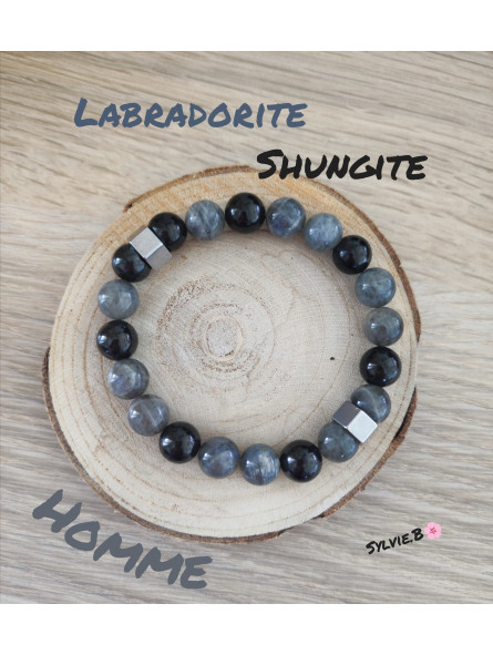 Bracelet Création masculine en Labradorite & en Shungite