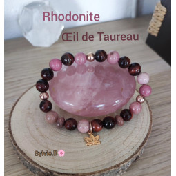 Bracelet 2 Pierres (Rhodonite & Œil de Taureau) - Modèle Unique