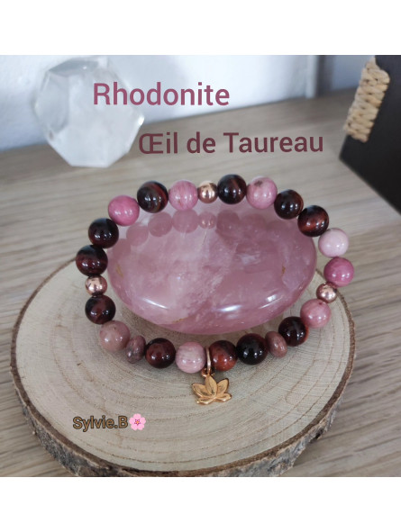 Bracelet Boules Création en Rhodonite & Œil de Taureau