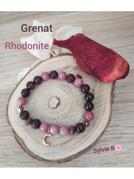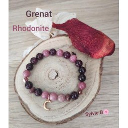 Bracelet 2 Pierres (Rhodonite & Grenat) - Modèle Unique