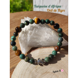 Bracelet en Basalte & Quartz Rose