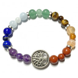 - Ce Bracelet élastique est composé de petites boules ou perles en pierres naturelles intercalées de petites breloques argentées.