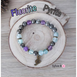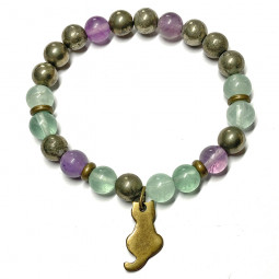 - Ce Bracelet élastique est composé de petites boules ou perles en pierres naturelles intercalées de breloques argentées.