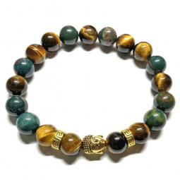 Bracelet Boules 3 Pierres (Oeil de Tigre, Apatite & Basalte) - Modèle Unique