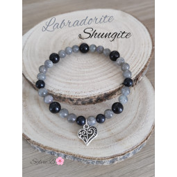 - Ce Bracelet élastique est composé de petites boules ou perles en pierres naturelles intercalées de rondelles facettées en Argent et d'un coeur en Argent.