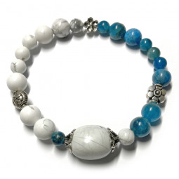 - Ce Bracelet élastique est composé de boules ou perles en pierres naturelles intercalées de 2 coupelles fleur en Argent et 2 rondelles lisses en Argent.