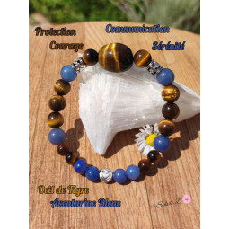 Un bracelet boules pour homme, composé de deux pierres naturelles ou semi-précieuses auxquelles sont intercalées une rondelle ciselée et une colonne travaillée en métal argenté. Ce bijou en plus d'être une création unique et originale est également très masculin avec ses perles en 10 mm. Chaque pierre naturelle a ses propres vertus et cela est bien repris en Lithothérapie qui explique que leurs bienfaits nous sont profitables. Ce bracelet boules se compose de trois pierres semi-précieuses l'Oeil de Tigre, la Malachite et de la Shungite. L'Oeil de Tigre est bien connu en Lithothérapie pour être une pierre naturelle de protection. Cette pierre semi-précieuse a les propriétés d'un miroir qui renvoie les énergies négatives vers son émetteur. L'Oeil de Tigre aide aussi à la confiance en soi et équilibre le Yin et le Yang. C'est également une pierre naturelle qui permet de surpasser les complexes d'infériorité et de timidité. La deuxième pierre naturelle qui se trouve sur ce bracelet est la Malachite. Cette très belle pierre semi-précieuse est relativement puissante, elle absorbe les ondes négatives et polluantes. La Malachite correspond au chakra du cœur. Une pierre naturelle qui aide à la pureté, la tendresse et la sincérité en permettant une ouverture du chakra du cœur. La Malachite favorise aussi la clairvoyance sur les personnes avec qui on peut tisser des liens ou pas. Elle purifie et active les chakras pour une belle harmonie au niveau spirituel. Cette pierre semi-précieuse aide à avoir de l'assurance. Cette pierre naturelle aide à favoriser le changement et la prise de risque car elle engage aux transformations. Sur le plan physique, la Malachite est reconnue en Lithothérapie pour avoir des propriétés anti- inflammatoires, grâce à sa forte teneur en cuivre. La Malachite apaise la plupart des douleurs qu'elles soient d'origine musculaire, articulaire ou nerveuse. La Shungite, elle, qui est la troisième pierre naturelle qui compose ce bracelet pour homme, purifie ce qui l'entoure. La Shungite va purifier l'aura en créant une ouverture émotionnelle. Cette pierre semi-précieuse réaligne elle aussi les chakras. La Shungite est un bouclier contre toutes les formes de radiations et les formes ésotériques. La Shungite est une pierre naturelle régénérante. Vous comprenez donc que la Malachite à proximité de la Shungite est continuellement nettoyée et à côté de l'Oeil de Tigre protégée des énergies négatives. Voici un bracelet bien-être exceptionnel.