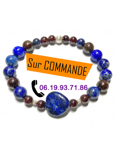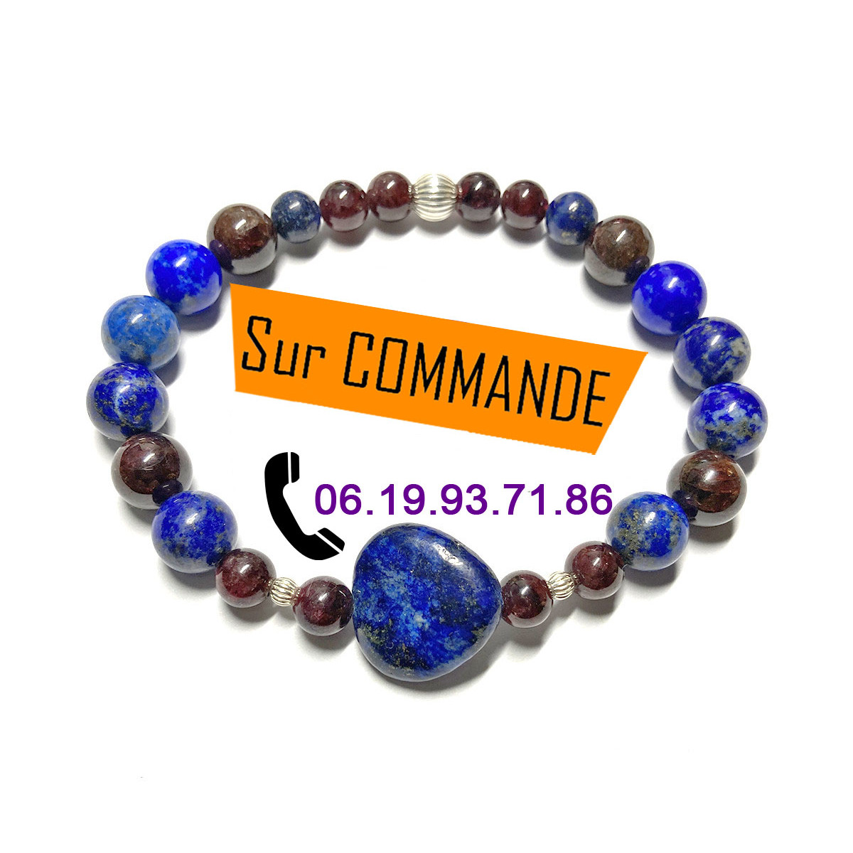 Un bracelet boules pour femme, composé de 2 pierres naturelles ou semi-précieuses avec également trois perles striées en Argent et une très jolie perle en forme de cœur en Lapis Lazuli, ce qui lui donne beaucoup de féminité, et comme ce bijou est une création unique, son originalité l'est tout autant. Les deux pierres naturelles choisies et associées sur ce bracelet boules bien-être sont le Lapis Lazuli et le Grenat. Un bracelet bien-être effectivement car comme connu en Lithothérapie, chacune des pierres naturelles possèdent des vertus et à leur contact nous profitons de leurs bienfaits. Le Lapis Lazuli est une pierre naturelle qui aide à débloquer les chakras de la gorge et du troisième œil en stimulant l'expression des sentiments et des émotions. Cette belle pierre semi-précieuse facilite les relations d'amour, d'amitié, tout comme la communication avec autrui. Le Lapis Lazuli est un puissant amplificateur de la pensée. Cette pierre naturelle est donc un instrument de purification du mental et des facultés extrasensorielles. Le Lapis Lazuli apporte également de la sérénité et facilite ainsi les réalisations spirituelles et la protection contre les attaques psychiques. Enfin cette pierre naturelle aide à un regain de confiance et encourage à reprendre sa vie en main. Le Grenat est la deuxième pierre naturelle qui compose ce joli bijou. Le Grenat aide à améliorer la confiance et l'estime de soi. C'est aussi une pierre semi-précieuse qui donne de l'énergie, le Grenat est régénérant. Il aide aussi au courage. C'est la pierre naturelle de la compassion et la sérénité, le Grenat est efficace pour aider à se protéger des cauchemars.