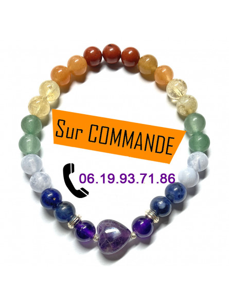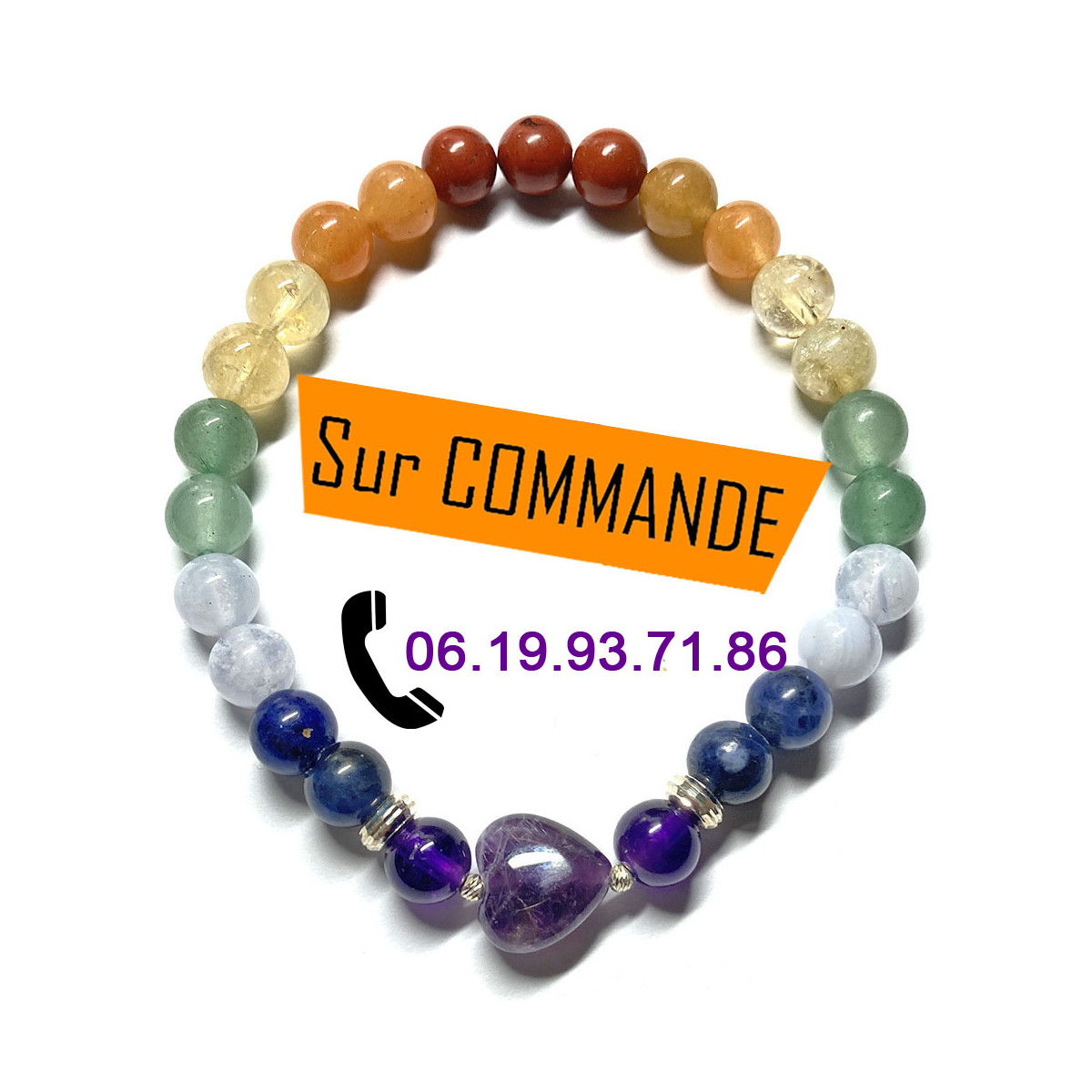 - Ce bracelet est composé de sept pierres naturelles différentes aux couleurs en parfaite résonance avec les points énergétiques du corps. Ce bijou original est une création unique avec des perles de 6 mm qui représentent les 7 chakras, un Coeur en Améthyte ainsi que deux mini perles en Argent et deux rondelles striées en Argent également rendent ce bracelet boules très féminin.