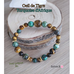 Bracelet 2 pierres (Lépidolite Violette & Turquoise) - Modèle unique
