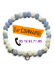 Bracelet boules, pour femme en Pierre de Lune et d'Angélite composé de petites boules ou perles en pierres naturelles semi-précieuses pour la Lithothérapie. Un bracelet de création unique et originale d'un diamètre de 54 mm et d'une longueur de 19 cm composé de minéraux pour un bien-être au quotidien