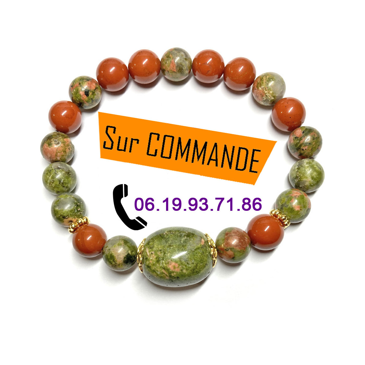 Bracelet 2 Pierres (Jaspe Rouge & Unakite) - Modèle Unique