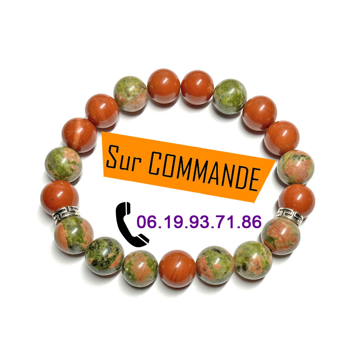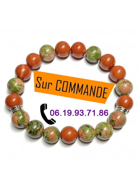 Un bracelet boules pour homme, une pièce unique, une création originale avec deux rondelles ciselées en métal argenté qui sont intercalées aux deux pierres naturelles ou semi-précieuses présentent sur ce bracelet. Les deux minéraux en perles de 10 mm sont le Jaspe Rouge et la Unakite. En Lithothérapie, les bienfaits des pierres naturelles ou semi-précieuses seraient reconnues pour leurs vertus. Cette association va permettre de combiner les bienfaits du Jaspe Rouge et ceux de la Unakite. Commençons par les vertus du Jaspe Rouge. En premier lieu, comme tous les Jaspes c'est une pierre naturelle dite de protection suprême. Le Jaspe serait un soutien qui apporterait sérénité dans les moments difficiles. Cette pierre naturelle équilibre le Yin & le Yang, harmonisant ainsi le corps physique, émotionnel et mental avec le monde éthérique. Le Jaspe Rouge fait ressortir, lui, plus précisément le tempérament de guerrier qui est en nous. Ce minéral est recommandé pour ceux qui désirent concrétiser un projet car c'est une pierre semi-précieuse de force intérieure, de volonté, d'énergie et de courage. Et en plus le Jaspe Rouge met en évidence les problèmes avant qu'ils deviennent excessifs. Ce minéral offre un aperçu sur les solutions et il stimule la concentration et la combativité. Le Jaspe Rouge apporte de la confiance en soi et il fait aimer la vie. Le Jaspe Rouge est en rapport avec le chakra racine donc aide à l'ancrage. Continuons maintenant avec la deuxième pierre naturelle qui est la Unakite. La Unakite serait une aide pour relativiser sur les situations et prendre ainsi du recul. Cette pierre naturelle permet de ne plus se juger et aide ainsi à faire la paix avec soi-même. Effectivement la Unakite est une pierre de vision qui va équilibrer les émotions avec la spiritualité pour clarifier le mental. Ce minéral va même cibler le mal qui vient de notre passé ou plus récemment en le mettant en lumière afin qu'il soit transformé. La Unakite est connue aussi pour aider au calme et à l'amitié. Un bracelet pour avoir la force de concrétiser un projet avec confiance et lâcher prise.
