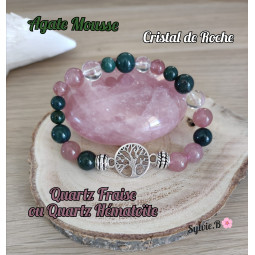 Un bracelet boules pour femme qui est une création unique. C'est un modèle très original et féminin avec deux coupelles, en acier inoxydable, qui entourent un perle de 10 mm en Labradorite et deux rondelles carrées en strass argentée. Ce bracelet boules pour femme est composé de trois pierres naturelles ou pierres semi-précieuses qui sont la Labradorite, la Shungite et la Sélénite. C'est sur ce joli bracelet symétrique que les perles de 10, 8 et 6 mm en Labradorite se mélangent à celles en 8 et 6 mm en Shungite et enfin deux perles en Sélénite en 8 mm. Les trois pierres naturelles présentes sont la Labradorite, la Shungite et la Sélétite. C'est une association très efficace grâce aux vertus, reconnues en Lithotérapie, de chacune de ses trois pierres naturelles. Tout d'abord commençons par les vertus de la Labradorite. La Labradorite est une pierre naturelle très réputée en Lithothérapie. Effectivement, cette jolie pierre naturelle, grise aux reflets parfois bleutés, absorbe les énergies négatives en préservant votre propre énergie. Elle est le minéral symbole de force. Elle est régénératrice. C'est un vrai bouclier de protection. La Labradorite est également connue pour être la pierre du thérapeute. Cette pierre semi-précieuse est recommandée en milieu médical car protectrice elle permet aussi de mieux comprendre les personnes qui nous entourent. Cette pierre Naturelle aide à renforcer les pensées sereines et calme tout en offrant aussi une protection mentale. Un minéral qui peut accompagner les personnes seules à se sentir mieux. La Labradorite se porte en cas de baisse de moral car elle aide à retrouver vigueur mentale ou physique. Comme la Labradorite absorbe les énergies négatives, elle a besoin d'un nettoyage quotidien et c'est justement ce que l'on obtient avec la Shungite présente sur ce bracelet qui permettra aux bienfaits de la Labradorite et de la Shungite, l'une à coté de l'autre, d'être continuellement efficaces. La Shungite est un minéral qui réaligne les Chakras et purifie l'aura en créant une ouverture émotionnelle dans une stabilité totale. La Shungite est une pierre naturelle qui nettoie et régénère. La Shungite est un vrai bouclier contre toutes formes de radiations, mais aussi contre les formes ésotériques. Enfin, la dernière pierre naturelle présente, et ce avec deux perles seulement, est la Sélénite. La Sélénite correspond au chakra coronal et permet la clarté de l'esprit. Pierre naturelle de bien-être et de sérénité. La Sélénite est excellente pour la méditation ou le travail spirituel car elle accède à la conscience Angélique, censée être entre la matière et la lumière. La Sélénite aide, également à la détente et au sommeil. Cette belle pierre naturelle aide aussi à faire table rase du passé pour repartir sur des bases solides. Bien que peu présente, elle ajoutera aux trios une belle luminosité et de clarté. Un bracelet de protection et de sérénité.