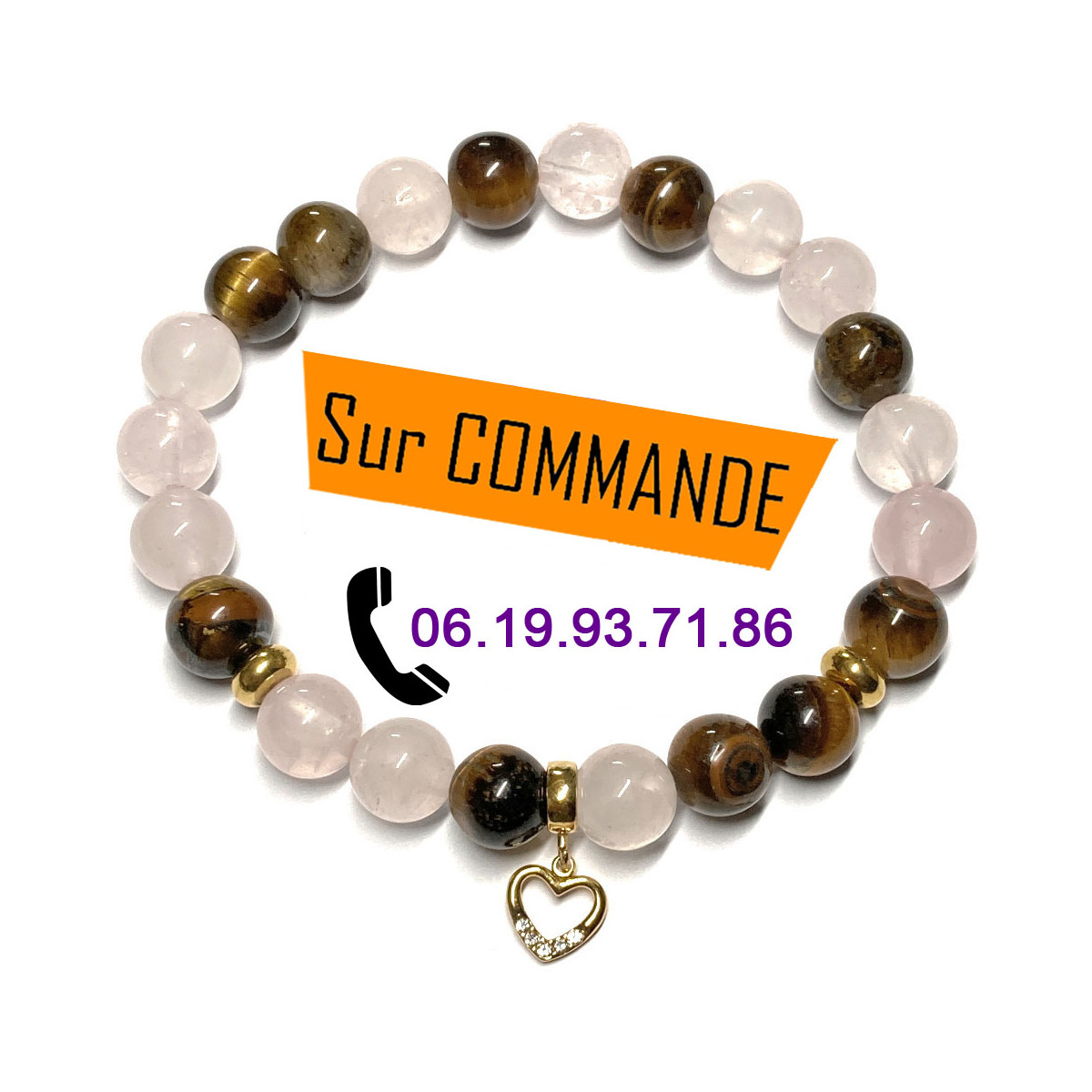 Un bracelet boules pour femme, une création originale et unique avec un pendentif en Acier Inoxydable doré et oxyde de zirconium représentant un cœur, tenu par une attache en Argent doré à l'or fin, ainsi que deux rondelles lisses en Acier Inoxydable doré. Ils s'intercalent tous aux deux pierres naturelles ou pierres semi-précieuses qui le composent. Ce bijou asymétrique est élégant et très féminin avec des perles en 8 mm. En Lithothérapie les bienfaits des pierres naturelles sont reconnues et classées. Ainsi l'association de ces deux pierres semi-précieuses, le Quartz Rose et l'Oeil de Tigre, permettra de jumeler les vertus de chacune d'elles. La première pierre naturelle de ce bracelet boules est la Quartz Rose. Le Quartz Rose est la pierre naturelle de paix, de douceur et d'amour inconditionnel. Cette pierre semi-précieuse permet l'acceptation d'aimer de nouveau, en libérant et en guérissant les blessures de l'âme. Le Quartz Rose permet de la tendresse et de la douceur dans les rapports humains. La seconde pierre naturelle de ce bracelet boules est l'Œil de Tigre. En Lithothérapie, l'une des pierres les plus renommées comme pierre de protection est l’œil de Tigre. L'Œil de Tigre, tel un miroir renvoie les énergies négatives à son émetteur. C'est une pierre naturelle également qui aide au courage. L'Œil de Tigre aide aussi à avoir confiance en aidant à surpasser les complexes d'infériorité et de timidité, ceci parce que ce minéral est en lien avec le plexus solaire. L'Œil de Tigre permet également de se protéger dans des lieux où il y a pas mal de monde. Ce bracelet de protection protège en gardant amour inconditionnelle et douceur.