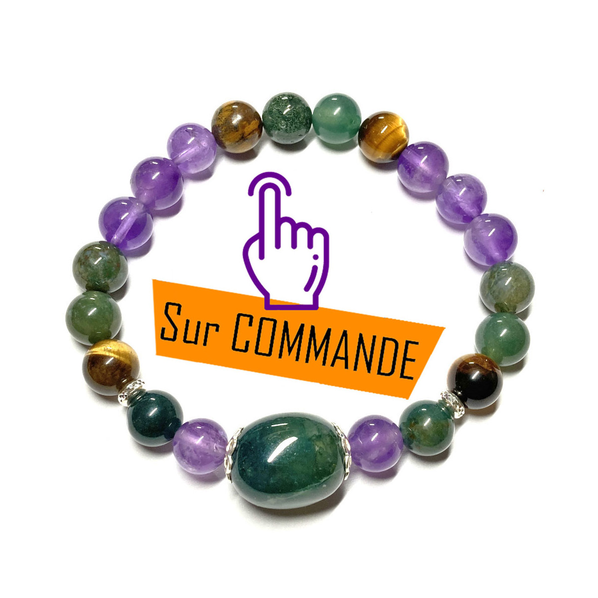 Bracelet Boules en Agate Mousse, Améthyste & Œil de Tigre