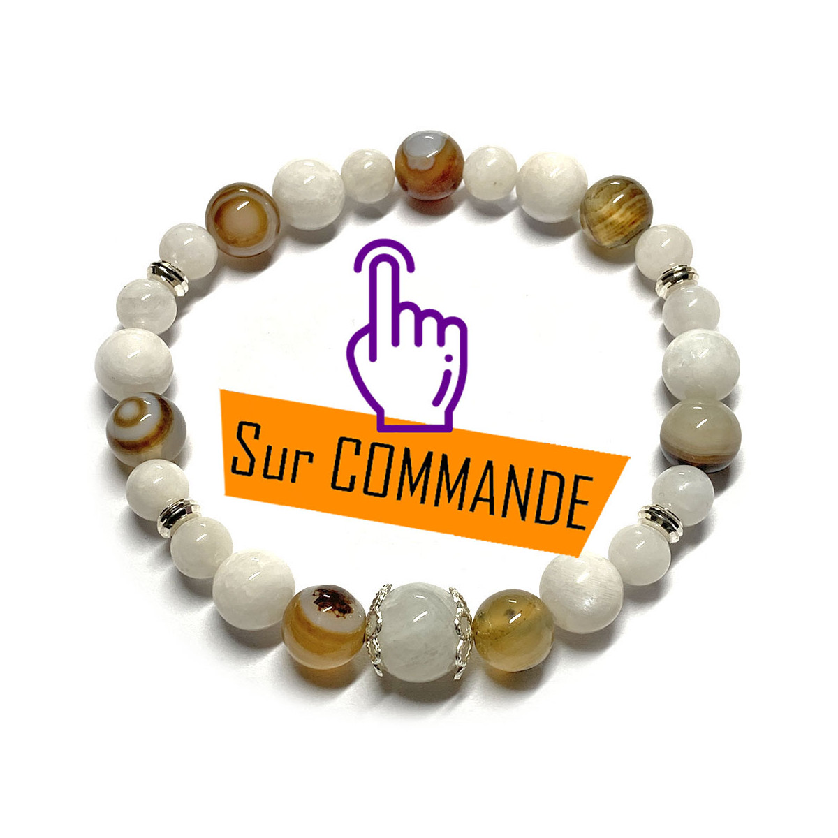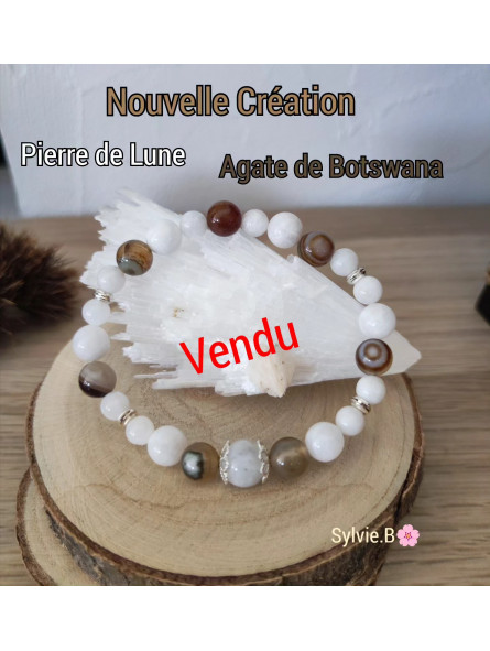 Bracelet Boules en Pierre de Lune & Agate Botswana