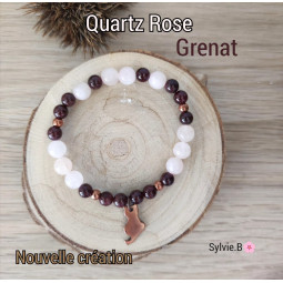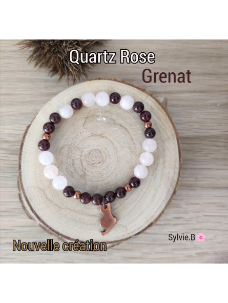 Bracelet 2 Pierres (Quartz Rose & Grenat) - Modèle Unique