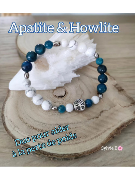 Bracelet Boules Apatite & Howlite avec Arbre de vie