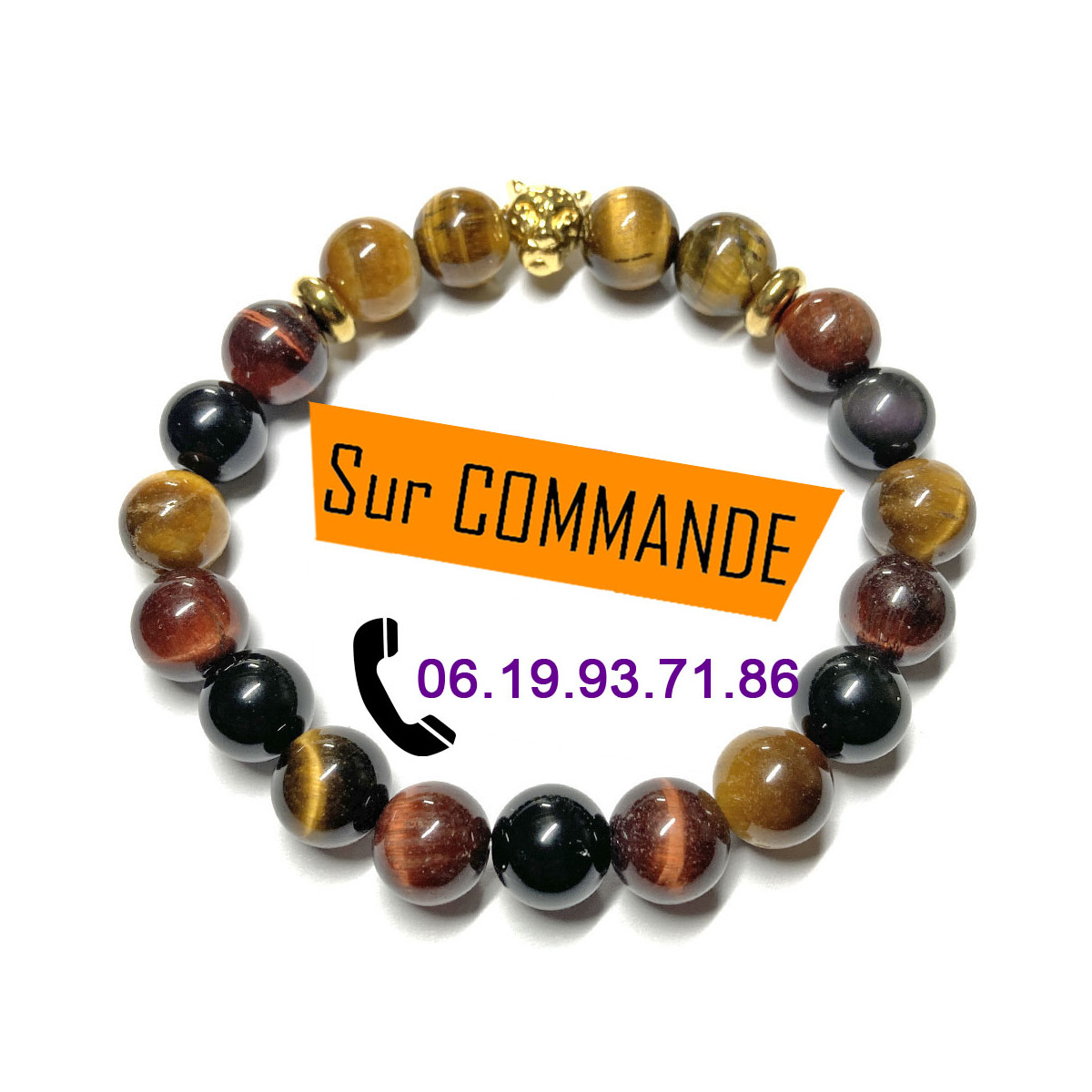 Un bracelet boules pour homme, une création unique et très originale avec une perle dorée à l'Or Fin et représentant une tête de léopard ainsi que deux rondelles lisses dorées en Acier Inoxydable qui s'intercalent aux trois pierres naturelles ou semi-précieuses qui composent ce très joli bracelet. En Lithothérapie, les vertus des minéraux sont reconnues pour partager leurs bienfaits à qui les porte. Ici les trois pierres naturelles sont tous les trois des pierres semi-précieuses de protection. Le premier minéral est l’œil de Tigre, tel un miroir il renvoie les énergies négatives à son émetteur. C'est une pierre naturelle également qui aide au courage, à avoir confiance en aidant à surpasser les complexes d'infériorité et de timidité. Comme toutes les Obsidiennes, l'Œil Céleste, la seconde pierre naturelle sur ce bracelet boules pour homme est une pierre extrêmement protectrice car elle forme un bouclier contre le énergies négatives et écarte les influences spirituelles néfastes, mais l'Œil Céleste lui a un degré de protection supérieure car il transforme en lumière toutes les énergies négatives. Cette pierre semi-précieuse évacue toutes les entités en alignant et purifiant tous les chakras. Elle permet un travail de rétrospection sur soi, pas toujours facile de faire remonter ce que nous avons enfoui en énergies négatives par la force des choses, un peu lourdes souvent, mais l'Obsidienne Œil Céleste permet de faire ainsi ressortir ce qu'il y a de lumineux en nous. Ce minéral est un véritable Talisman. Enfin la troisième pierre semi-précieuse de ce bijou, très élégant est l'Œil de Taureau. L'Œil de Taureau est une pierre de protection plus axée sur les déplacements et actions physiques, tel que le sport, le travail. Pierre Naturelle qui aide aussi à équilibrer le Yin & le Yang et aide à nous protéger de notre propre jugement. C'est un bracelet Boules est ultra protecteur.