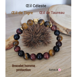 Bracelet 3 pierres (Œil de Tigre, Œil Céleste, Œil de Taureau) - Modèle Unique