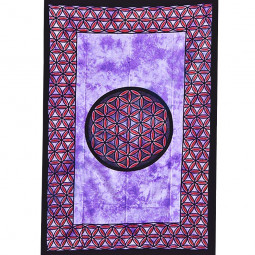 Magnifique Fleur de Vie sur une tenture violette de fabrication artisanale pour harmoniser vote intérieur ou énergétiser un cabinet de soins.